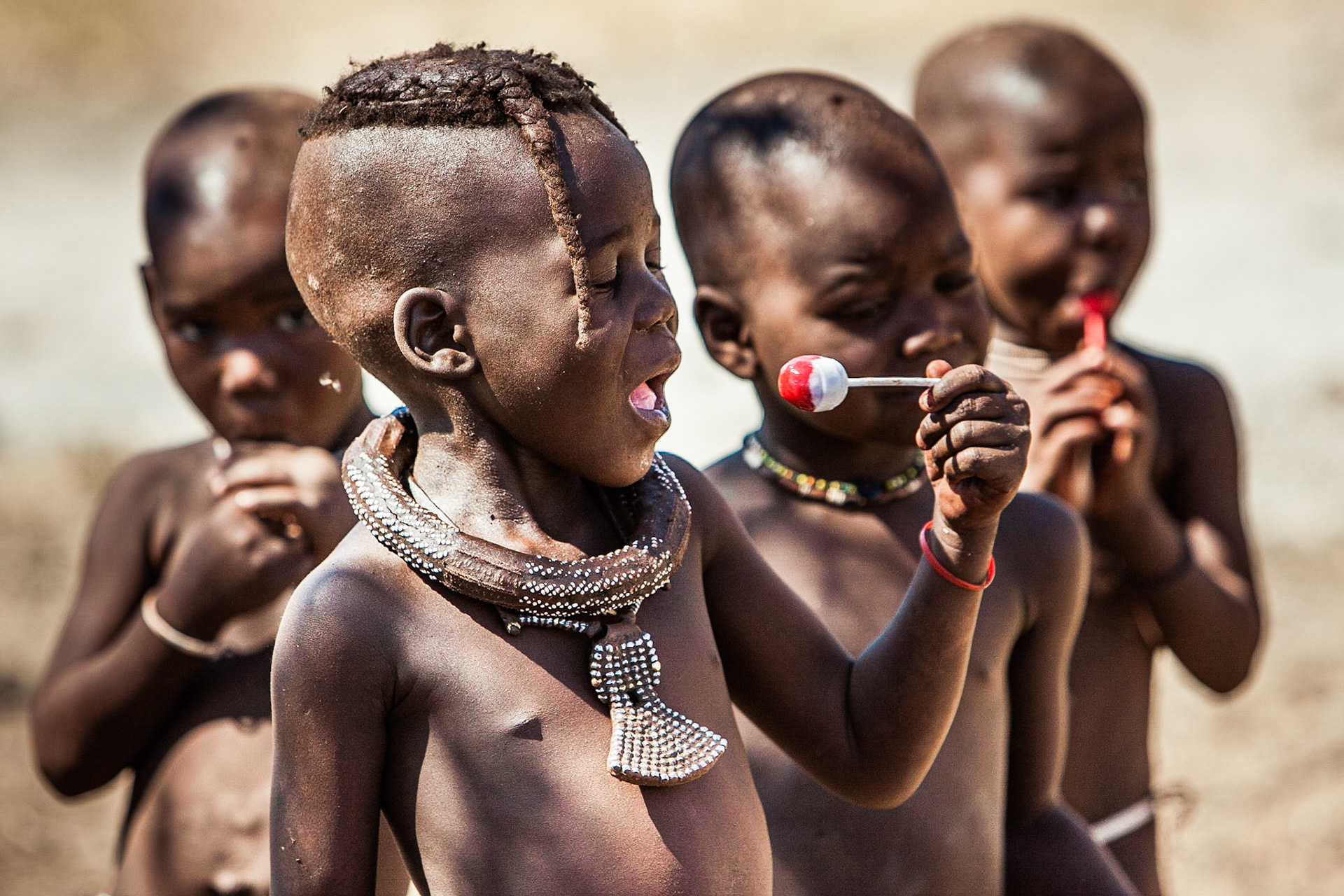 Dětí je v himbských vesnicích mnoho, ale zajímavé je, že jsme viděli převážně chlapce. Dívek bylo k vidění opravdu málo.