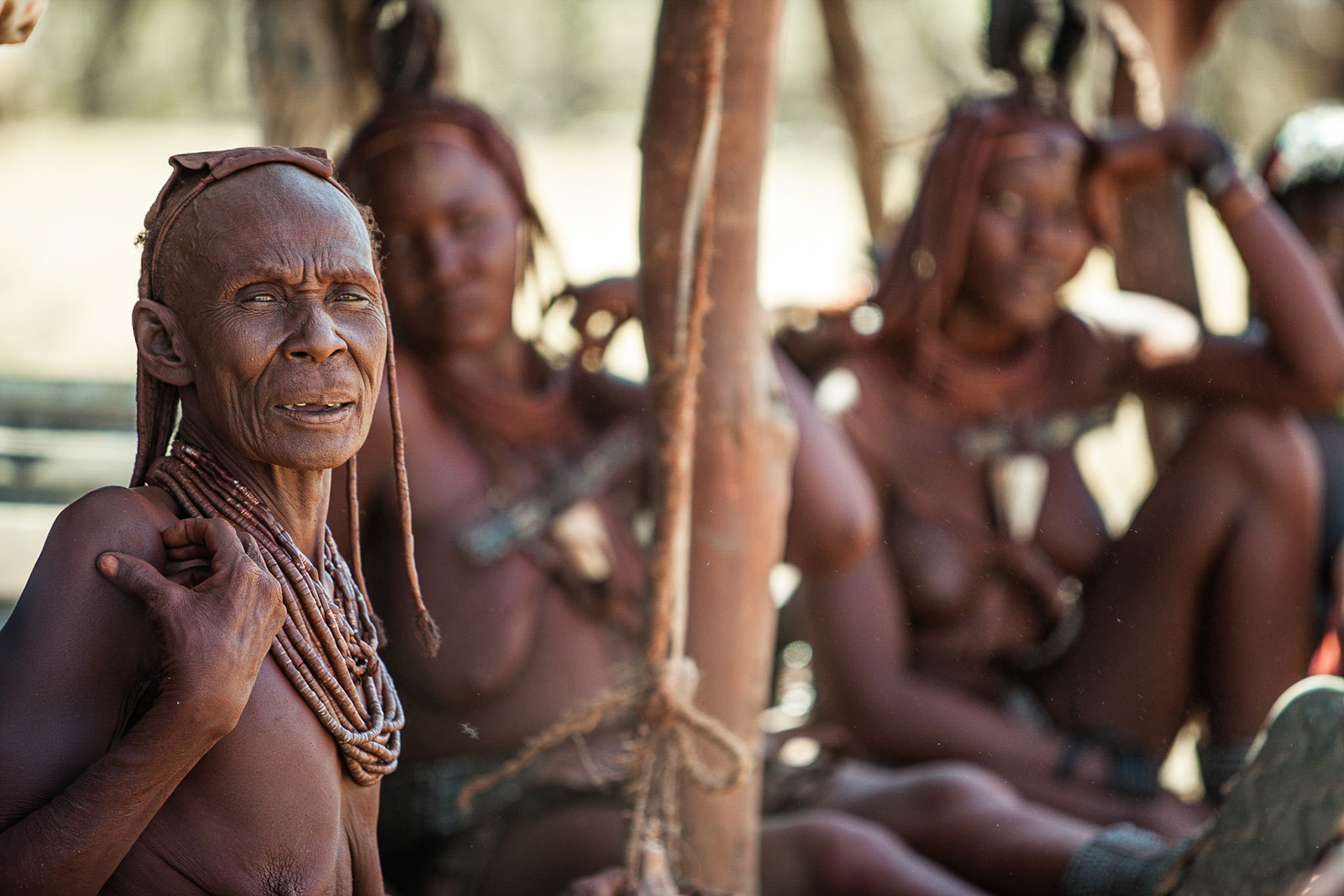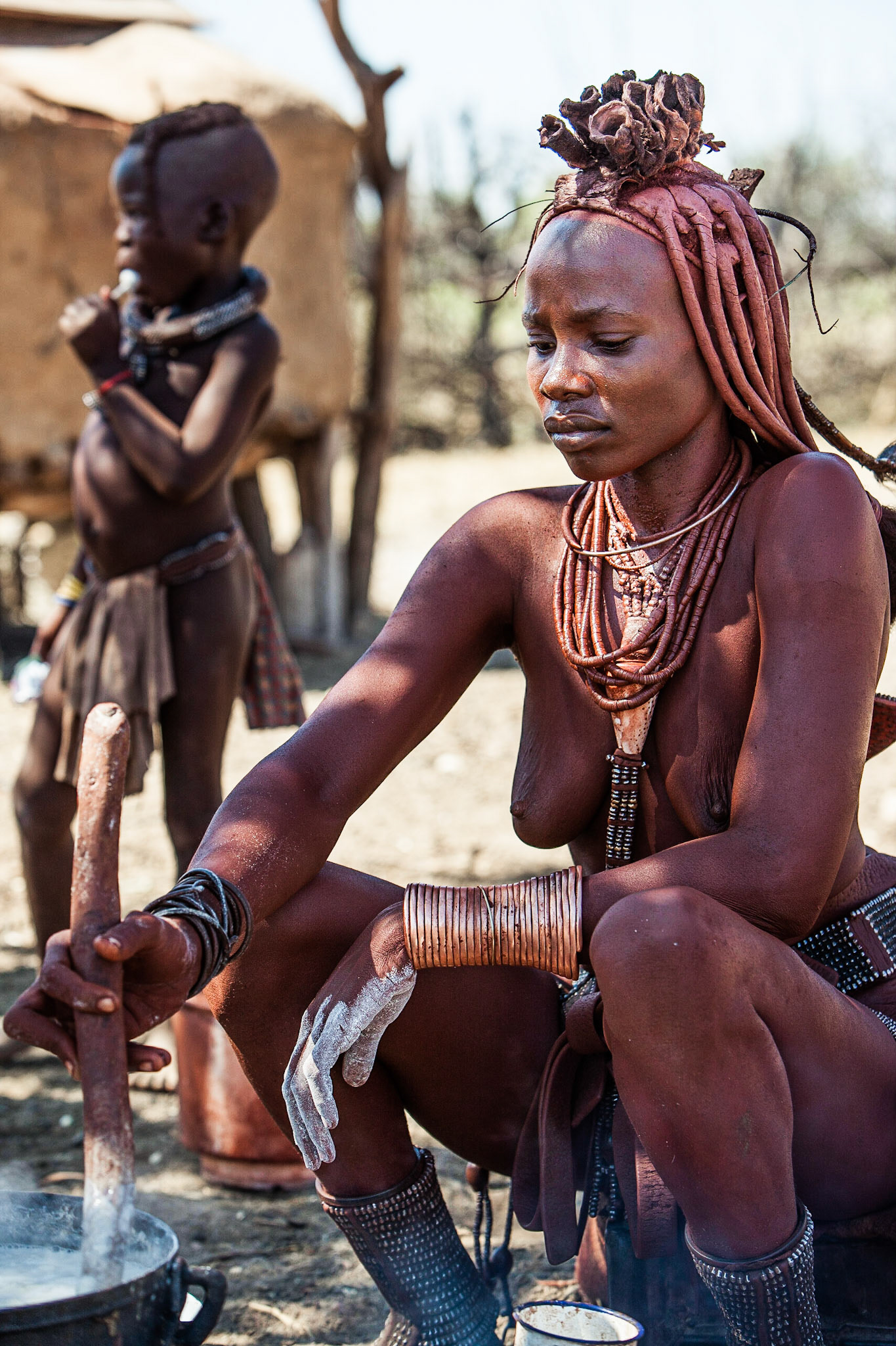 Pokud nenavštívíte himbskou vesnici brzy ráno, tak v podstatě nespatříte muže. Ti většinou zmizí s rozedněním do buše, kde pasou dobytek a kozy. Ženy se přes den věnují posedávání, klábosení, výrobě cetek pro turisty a samozřejmě vaření.